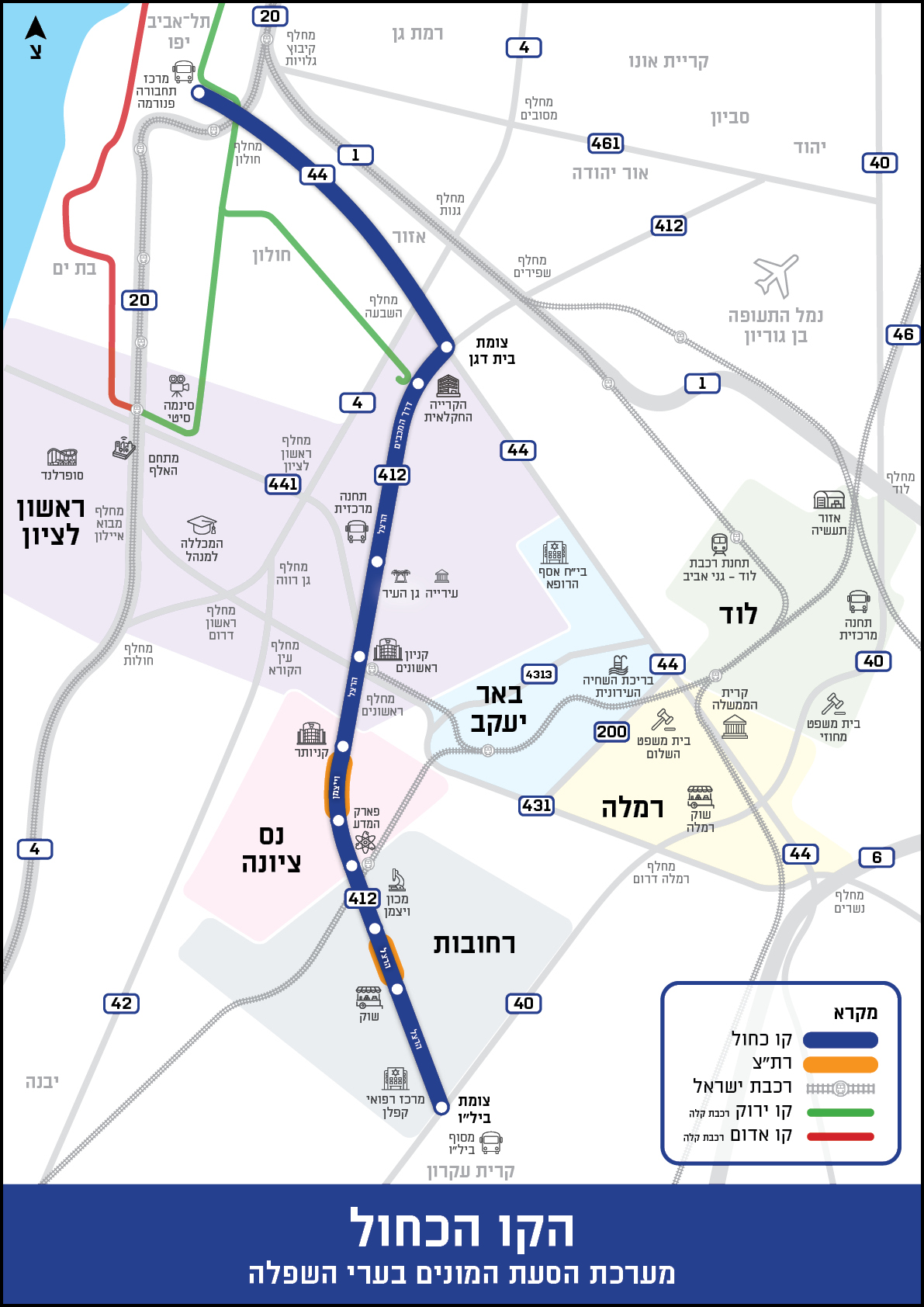 מטרונית הקו הכחול תעבור מקריית עקרון דרך רחובות, נס ציונה, ראשון לציון ועד לאזור תל אביב. היא תשמש אלטרנטיבה יעילה, אמינה ובתדירות גבוהה לרכב הפרטי!