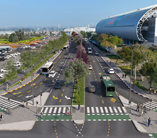 הפרויקט כולל 12 קילומטר של נתיבי תחבורה ציבורית רציפים ממזרח למערב עם שבילי אופניים דו-סטריים, תחנות אוטובוס חדשות ונגישות, וחיבור מהיר ויעיל למוקדי תעסוקה ואזורי ביקוש מרכזיים. בנוסף, הקמת חיבור תחבורתי חיוני לכביש 4, הפרדה מפלסית בצמתים מרכזיים עם שיקוע בצומת מרטין גהל, בניית גשר בצומת זבולון המר, וסלילת כביש חדש המחבר בין רחוב ראשון לציון לרחוב גליס. התכנון מבטיח קיצור זמני נסיעה, שיפור תדירות השירות, הפחתת עומסי תנועה וזיהום אוויר, וזרימה משופרת גם למשתמשי הרכב הפרטי באמצעות ההפרדה המפלסית. הכל תוך שמירה על פיתוח נופי ואיכות הסביבה, חידוש תשתיות תת-קרקעיות, הטמנת רשת החשמל בחלק מהתוואי, ותמיכה בתכניות הפיתוח העירוניות.